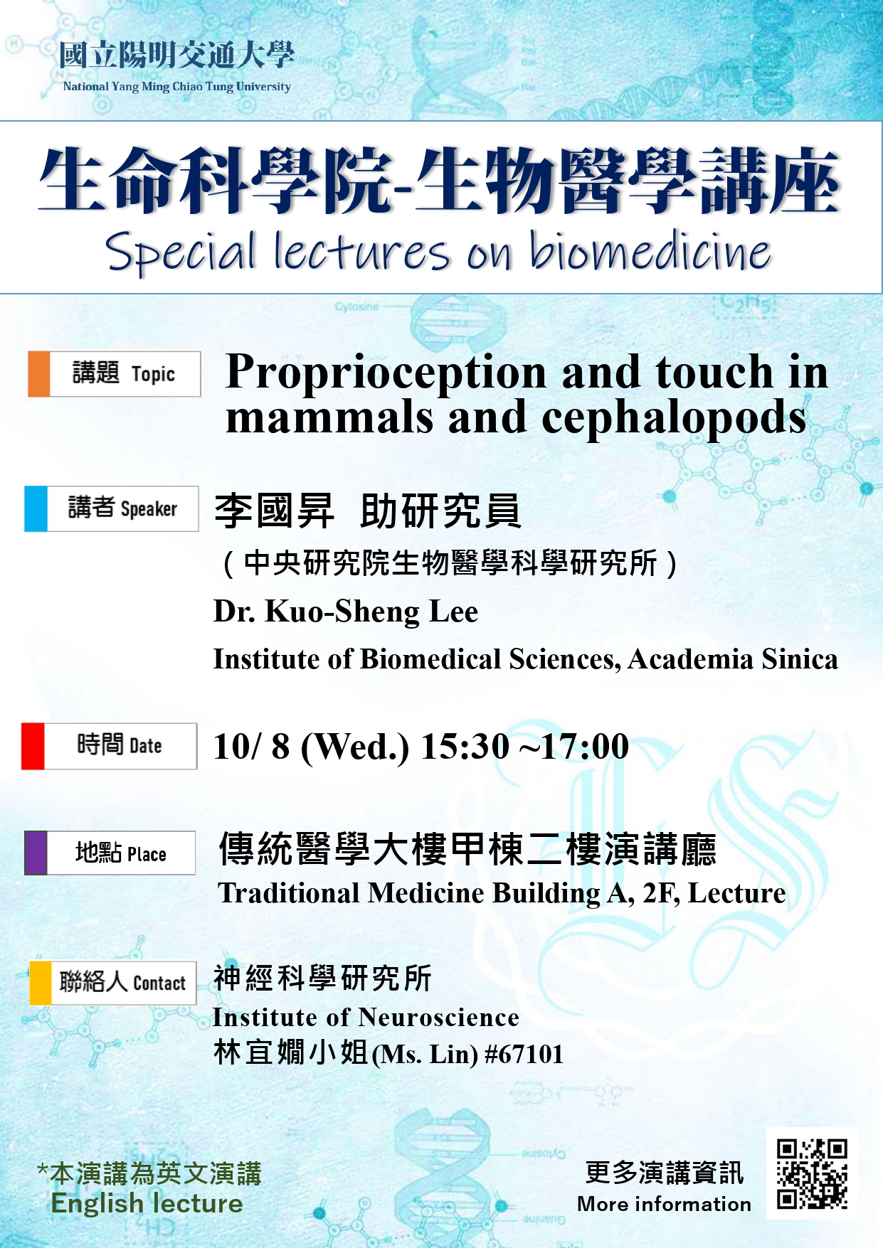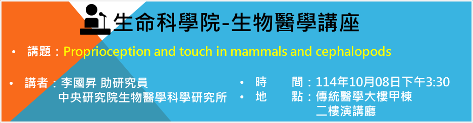 📌講  題:Proprioception and touch in mammals and cephalopods