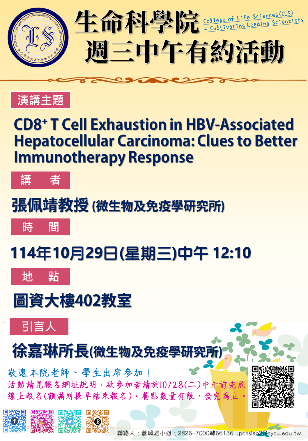📌講題:CD8⁺ T Cell Exhaustion in HBV-Associated Hepatocellular Carcinoma: Clues to Better Immunotherapy Response