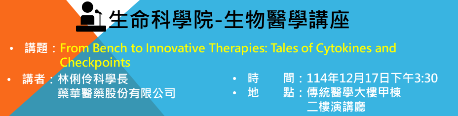 本次演講聯絡人:生命科學院 / 蕭珮君小姐 #66136